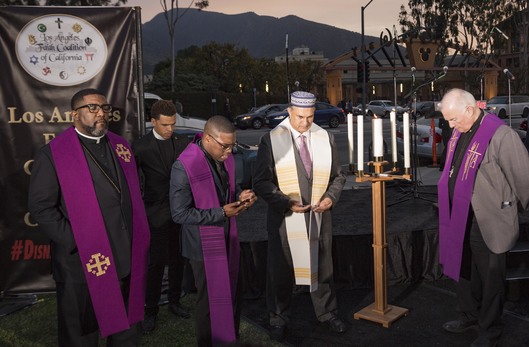 The rally in front of Walt Disney Co. followed a day of meetings and services focused on interfaith commitment to end religious hatred. A morning memorial service for the murdered Australian staff member and others “fallen in attacks on houses of worship” was held at the Church of Scientology Valley in North Hollywood and attended by religious leaders representing diverse Christian denominations, and the Jewish, Muslim and Sikh communities.