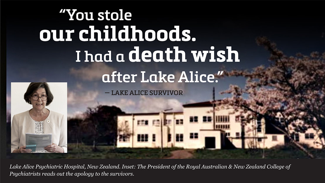 RANZCP’s apology was historically significant as it was the first time psychiatrists had acknowledged the severe trauma members of its ranks had inflicted on the children of Lake Alice. One media observer described it as “marking a pivotal step in addressing the harrowing legacy of abuse” that had transpired there in the 1970s.