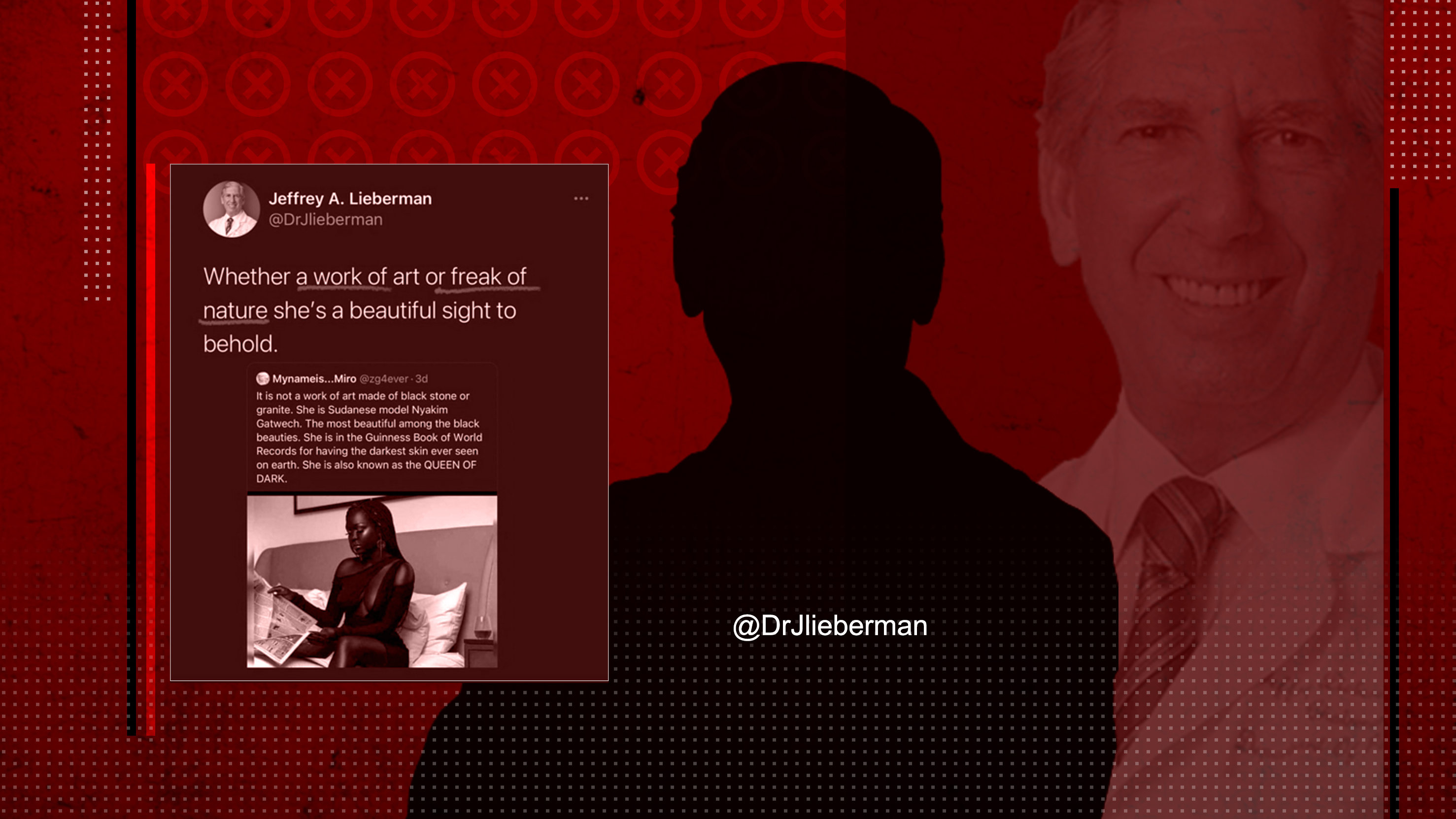 More than 200 years later, that bigoted mindset has permeated the entire psychiatric profession, as evidenced by the broad acceptance Lieberman had enjoyed within the psychiatric community before being caught out on Twitter. Characterized as a leading light of the mental health industry, Lieberman published some 700 articles and 17 books, including textbooks, and was considered an international expert. From May 2013 to May 2014, he was president of the American Psychiatric Association.